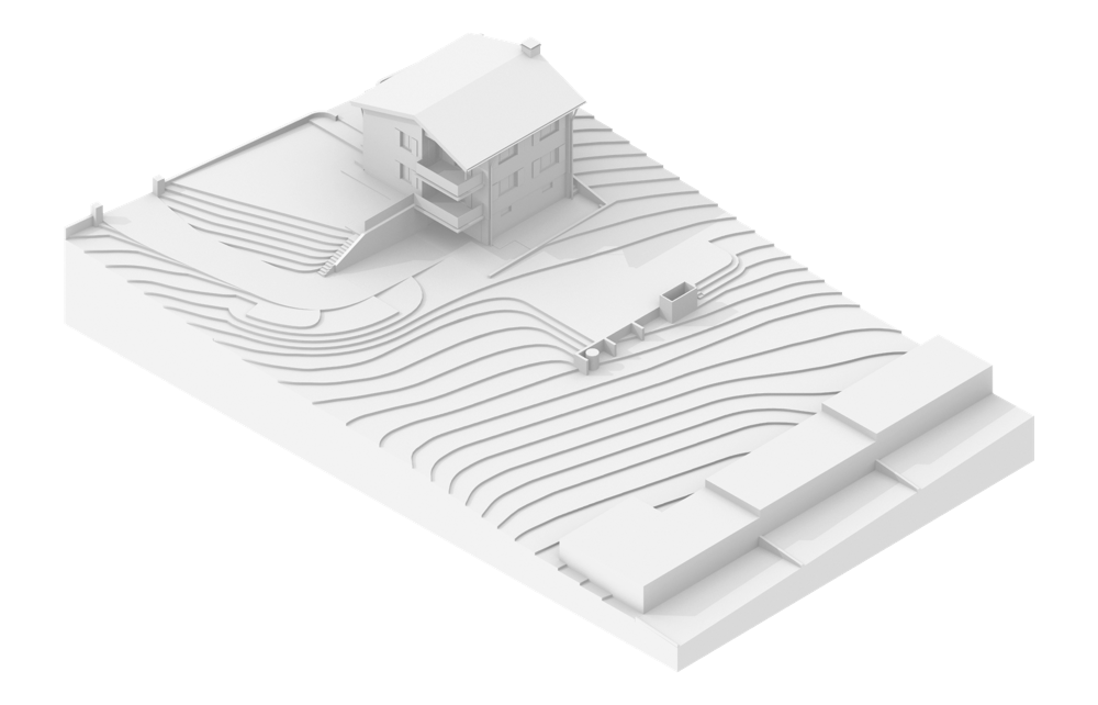 Cette maison individuelle a été construite en 1965 par les architectes jurassiens Gressot et Luscher pour le compte de Mme et M. Inés et Maurice Voisard. Elle est demeurée dans le giron de la famille Voisard depuis lors. Elle a reçu une isolation thermique en 1982 (en périphérie et sur le dernier plancher), de nouvelles fenêtres bois-métal en 2008 et un nouveau chauffage à pellets en 2009. Elle comprend 4 niveaux, avec un plain-pied inférieur, un plain-pied supérieur, un étage ainsi que des combles. Elle comprend en particulier cinq chambres à coucher, dont une de plain-pied avec lavabo, de deux salles d’eau et d’un garage à voiture fermé. La parcelle est bordée à l’aval d’une bande de 12 garages actuellement tous loués à des tiers ainsi que d’une remise pour l’entretien du jardin.